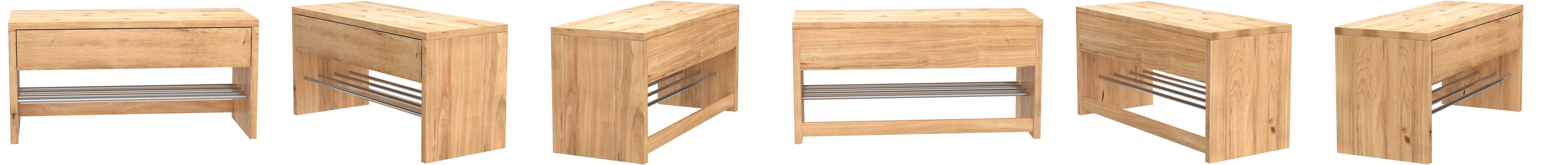 Schuhbank / schuhregal sigma, echtholz wildeiche massiv ge�lt, ablage metall verchromt, mit schublade, 81x32 cm, h�he 40cm from amazon, hometrends4you 801522 garderobenbank.
